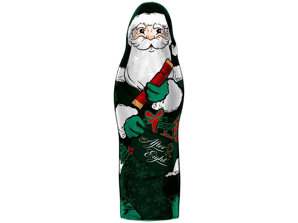 Jeśli kochasz After Eight, jesteś we właściwym miejscu w te Święta z After Eight Santa Claus. Mierząca około 18 cm i wykonana ze słynnej, słodkiej czekolady miętowej, świetnie prezentuje się na świątecznej tabliczce lub w pończochach św. Mikołaja.