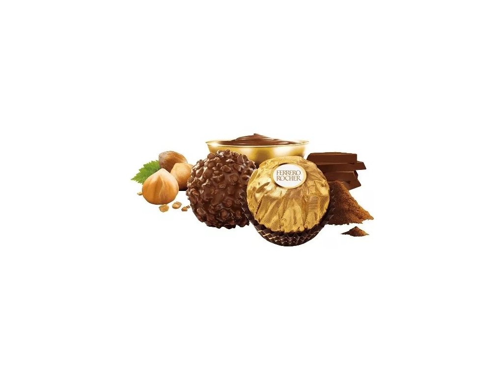 Pralinka - wafelek z polewą z mlecznej czekolady i kruszonymi orzechami laskowymi, z nadzieniem i całymi orzechami laskowymi.