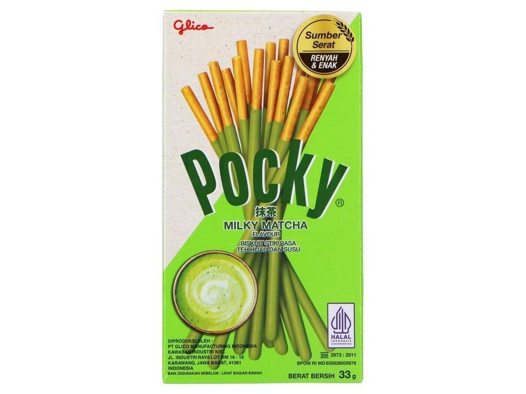 Składniki: mąka pszenna, cukier, olej palmowy, laktoza, mleko w proszku, masło, proszek z zielonej herbaty, emulgatory (E476), regulator kwasowości (E500), barwniki (E160a, E133), regulator kwasowości (E500), stabilizator (E322, E471, E472), przeciwutleniacz E307, E319, E320, E330, E339.