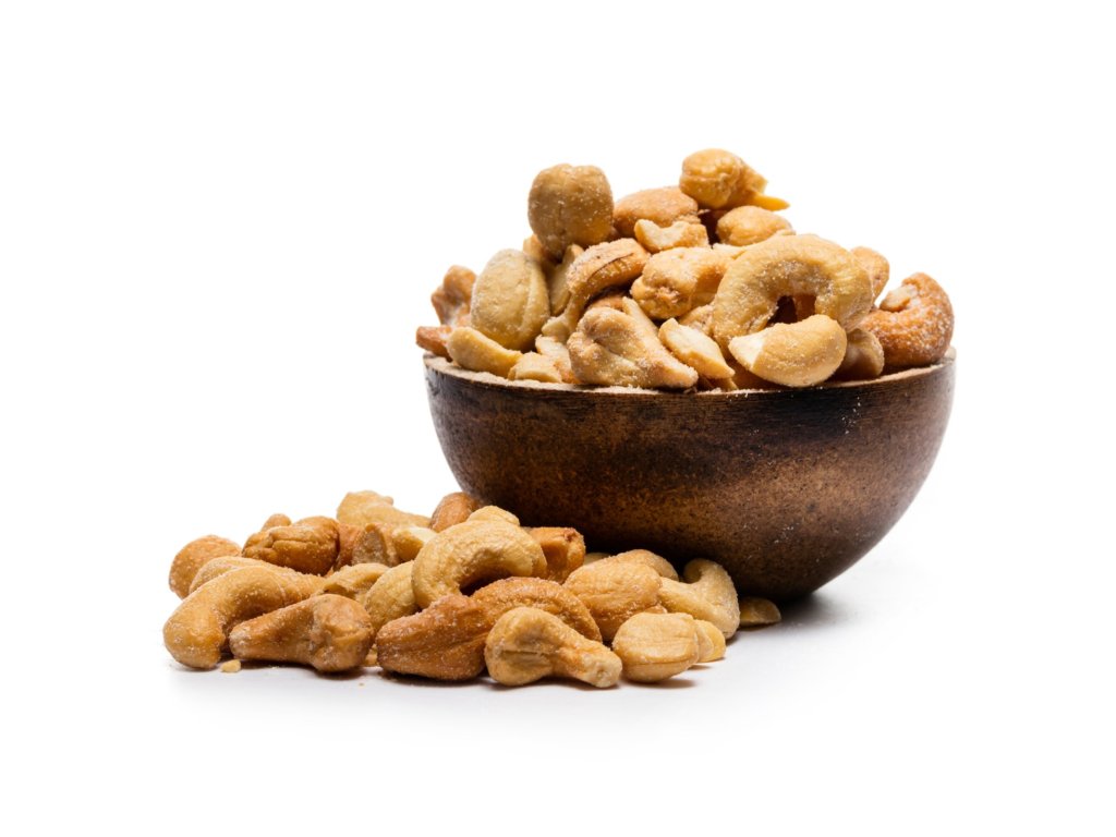 Prażona solona wersja naszych orzechów nerkowca, która nadaje się jako alternatywa dla klasycznych chipsów ziemniaczanych, na przykład na rodzinne uroczystości. Orzechy nerkowca rosną na drzewach do 12 m wysokości zwanych fasolą zachodnią. Sam orzech jest zawieszony w twardej oprawie na miąższu,który nazywa się jabłkiem nerkowca. Wydobycie pestki z tego owocu jest bardzo trudne. Orzechy nerkowca są świetne same w sobie, ale także jako składnik różnych deserów i innych słodkich i wytrawnych potraw, lub można z nich zrobić doskonały krem z nerkowców