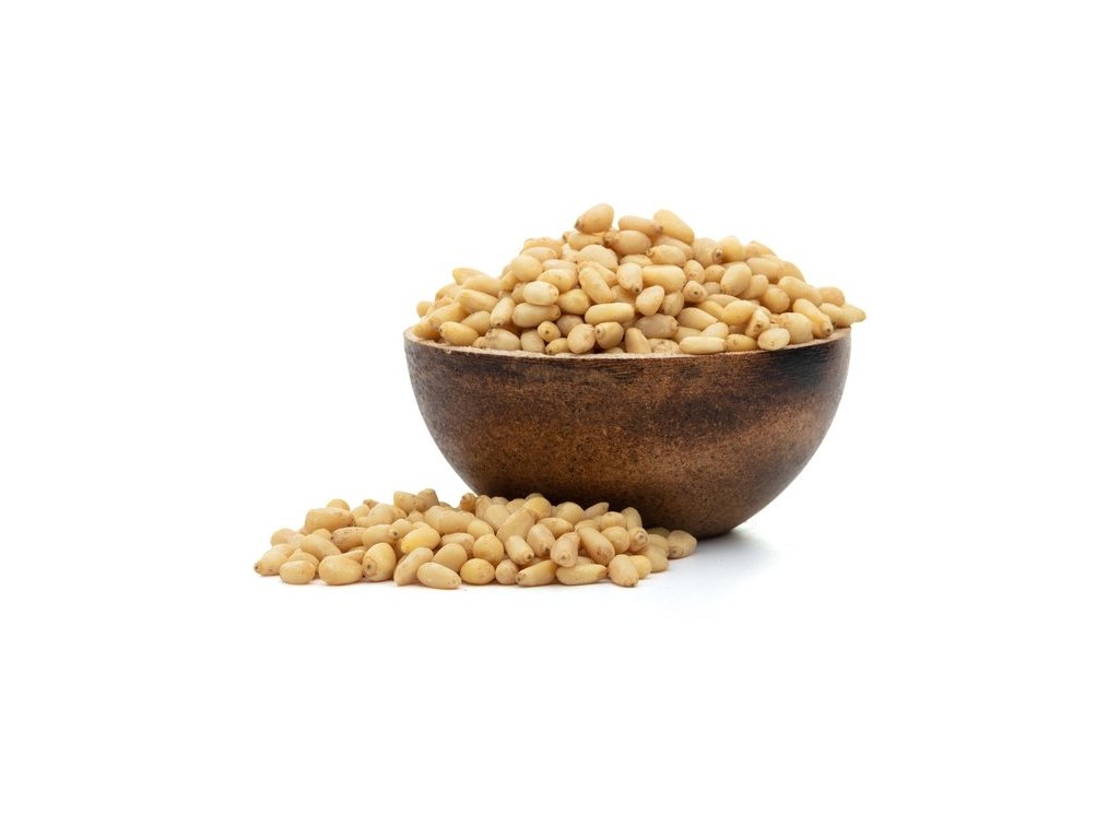 Kawior między orzechami. Przynajmniej są klasyfikowane jako orzechy, mimo że są to rzadkie nasiona sosny. Mają nieodparty żywiczny smak.