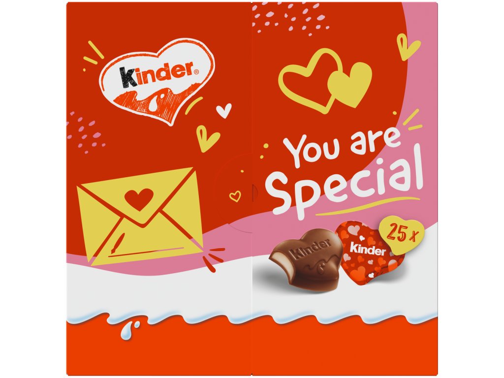 Mleczna czekolada 55% z nadzieniem mlecznym, w opakowaniu walentynkowym.