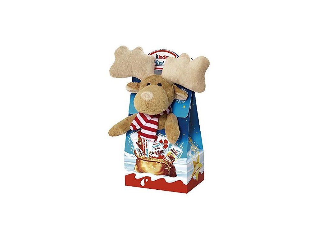 Popularne czekoladki Kinder Country, Kinder Schoko-Bons, Kinder Bueno oraz batonik Kinder w świątecznym opakowaniu z piękną pluszową zabawką renifera.