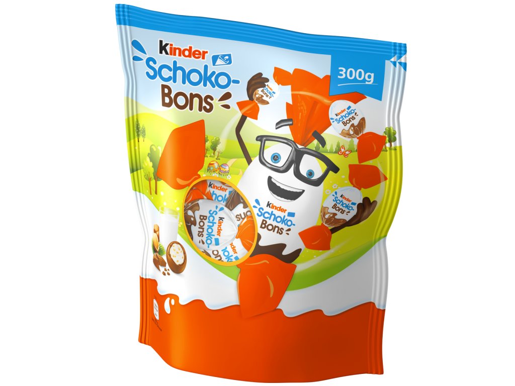Kinder Schoko-Bons to miękkie, kremowe cukierki z chrupiącymi orzechami laskowymi oblane warstwą delikatnej czekolady Kinder. Wyjątkowe doznania smakowe, które sprawiają radość i którymi można się łatwo dzielić dzięki indywidualnie pakowanym kawałkom. Opakowanie zawiera 48 pojedynczo zapakowanych cukierków.