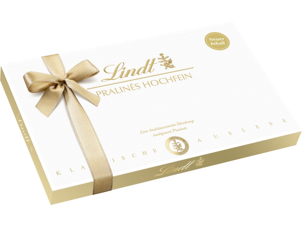 Rozkosz dla Twoich najcenniejszych chwil. Dzięki pralinom Hochfein najdoskonalsze kreacje szwajcarskich mistrzów czekolady Lindt trafiają do Ciebie w eleganckim opakowaniu klasy premium. Takie połączenie delektujących pralin to obowiązkowy punkt w życiu.