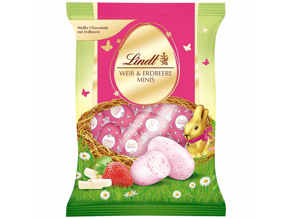 Tak smakuje wiosna! Pyszne Biało-Truskawkowe Mini Jajka Lindt przyniosą Ci owocową odmianę w dni wielkanocne.
