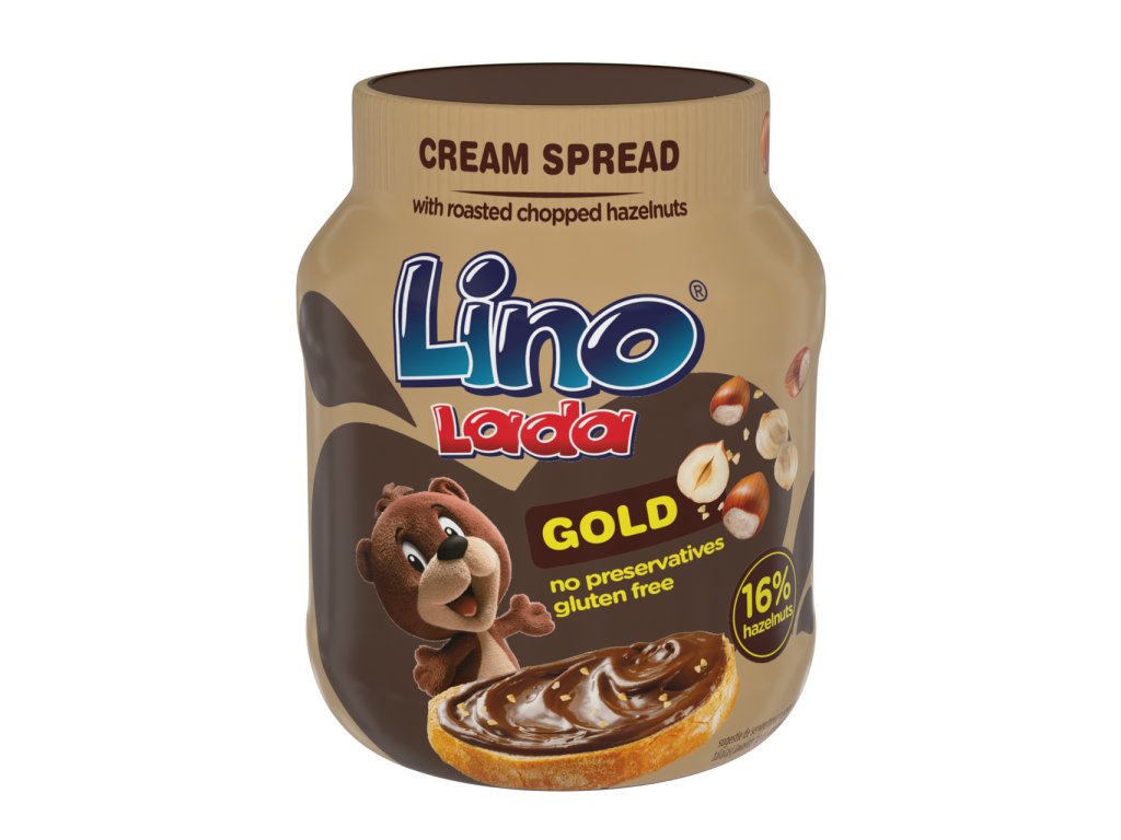Składniki: cukier, olej słonecznikowy, orzechy laskowe 10%, odtłuszczone mleko w proszku, prażone kawałki orzechów laskowych 6%, kakao w proszku o obniżonej zawartości tłuszczu, olej palmowy, serwatka w proszku, dekstroza, emulgator: lecytyna sojowa, całkowicie zestalony olej rzepakowy, aromaty.