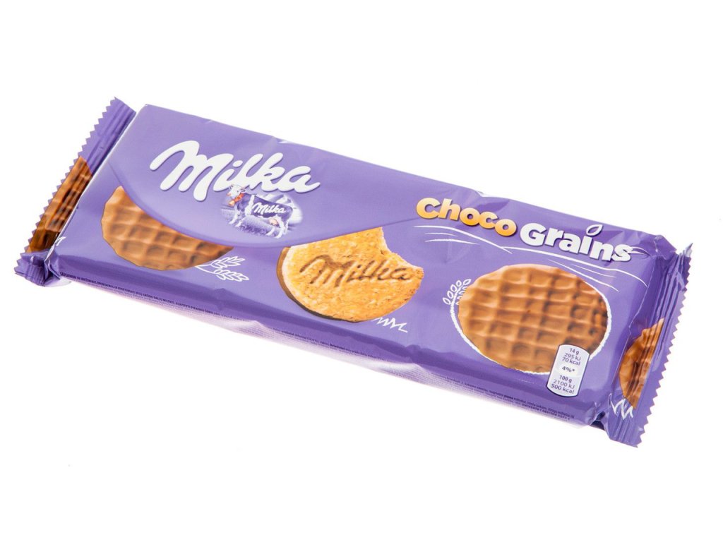 Milka Choco Grain w połowie obtoczona w mlecznej czekoladzie z mleka alpejskiego