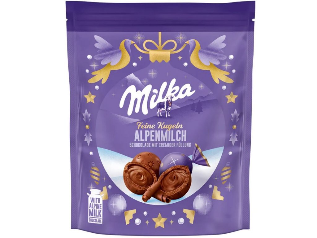 Miękkie cukierki Milka z alpejskiego mleka czekoladowego z kremowym nadzieniem z alpejskiego mleka. Miękka kulka rozpływa się w ustach i rozwija kremowy, czekoladowy smak.