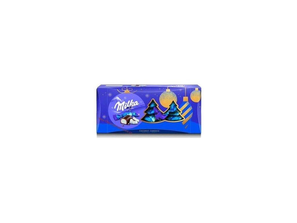 Składniki: cukier, wiórki kokosowe 12%, syrop glukozowy, masło kakaowe, odtłuszczone MLEKO w proszku, miazga kakaowa, serwatka w proszku, tłuszcz MLECZNY, sól, emulgatory (lecytyny SOJOWE, E476), miazga ORZECHOWA, substancja konserwująca (sorbinian potasu), sorbinian potasu (MLEKO), stabilizator (inwertaza), substancja utrzymująca wilgoć (gliceryna).