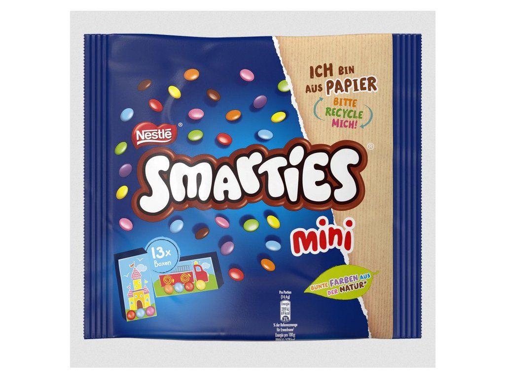 13 osobno pakowanych pudełek z drażetkami. Niemiecka wersja popularnych drażetek. Zawiera więcej kakao niż wersja czeska.