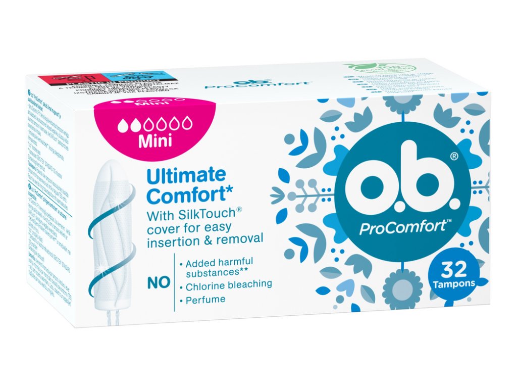 Tampony O.B. ProComfort zapewniają maksymalny komfort i niezawodną ochronę. Dzięki unikalnej technologii Dynamic Fit dopasowują się do kształtu ciała, a rowki blokujące skutecznie prowadzą płyn do środka tamponu. Powierzchnia SilkTouch ułatwia wkładanie. Bez dodanych zanieczyszczeń chemicznych*, nie wybielane chlorem, nie perfumowane. Rdzeń tamponu jest w 100% pochodzenia roślinnego.