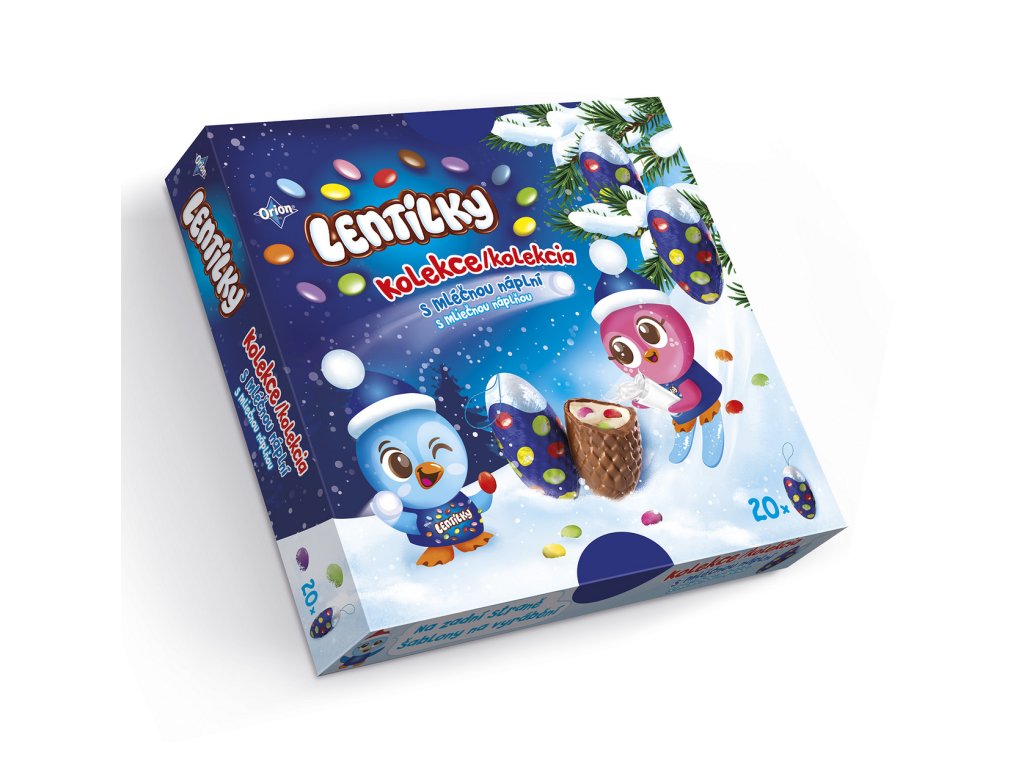Kolekcja pełna czekoladowych szyszek, za którymi kryją się popularne kolorowe mini drażetki Lentilky, rozświetli choinkę i oczy małych i dużych miłośników czekolady.