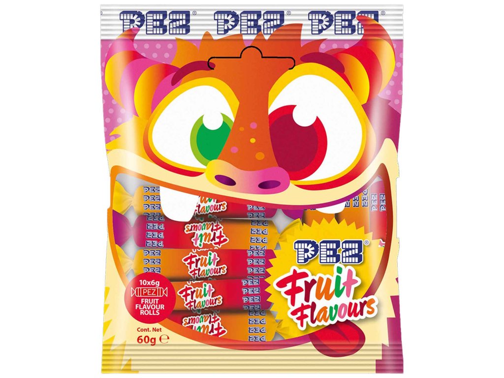 Cukierki owocowe PEZ to różnorodność owocowych smaków w wygodnym formacie. Każde opakowanie zawiera pojedynczo pakowane cukierki